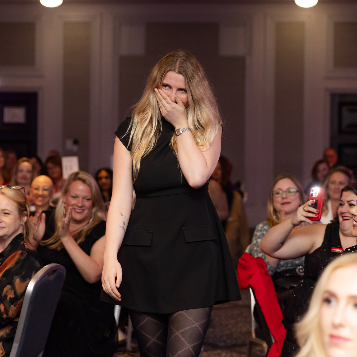 Tania Gerard makes her way to the stage to claim her prize.